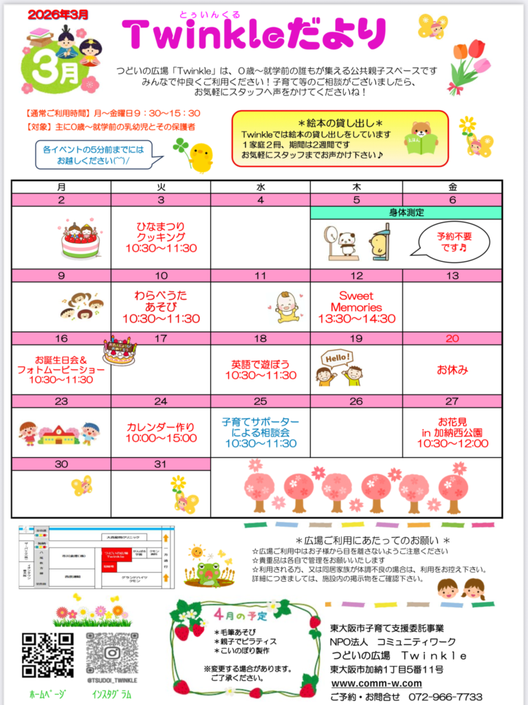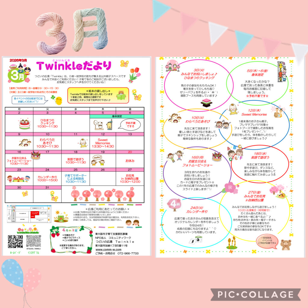 2026年3月のTwinkleだよりが出来ました〜✨